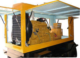 云龙柴油发电机组/移动柴油发电机组设计独具创新,机动性高、重心低、制动安全、制造精良、外形美观。 云龙拖车车架采用槽梁焊接成框架结构,节点选择合理、强度高、刚性好;同时装有钢板弹簧悬架结构;拖车采用高度可调节插销式牵引架,适用于各种高度牵引车;采用圆形钢管焊接直通式车轴,结构紧凑,安全可靠;车架四角设有机械式支撑装置,配备惯性行车制动、驻车制动和脱离应急制动,确保机组在各种状况下的安全;车架前端设有支撑轮,具备承受机组垂直载荷的功能的同时还具备导向功能;整车配备转向和刹车指示灯,同时装有尾灯标准插头